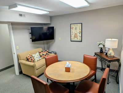 Our cozy Connect 4 conference room accommodates up to four attendees comfortably.